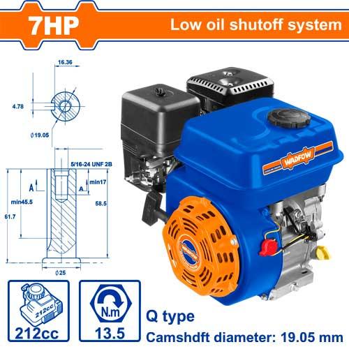 Gasoline enginelg...Max.output:7.0HPlg...Camshaft diameter:19.05mm,Q typelg...Max.torque:13.5N·mlg...